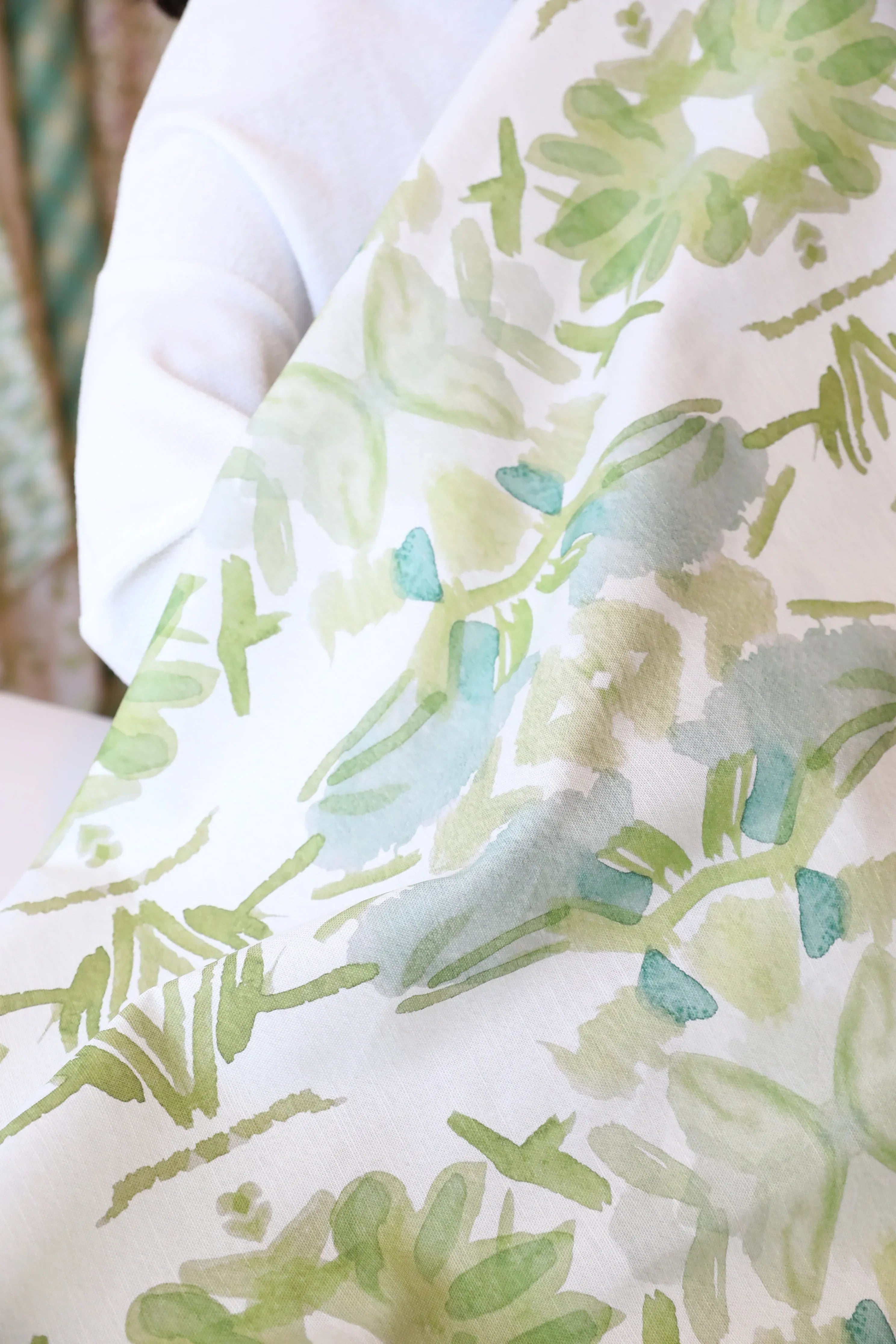 Wildflowers I White & Apple Green Luxury Pillow Large Repeat