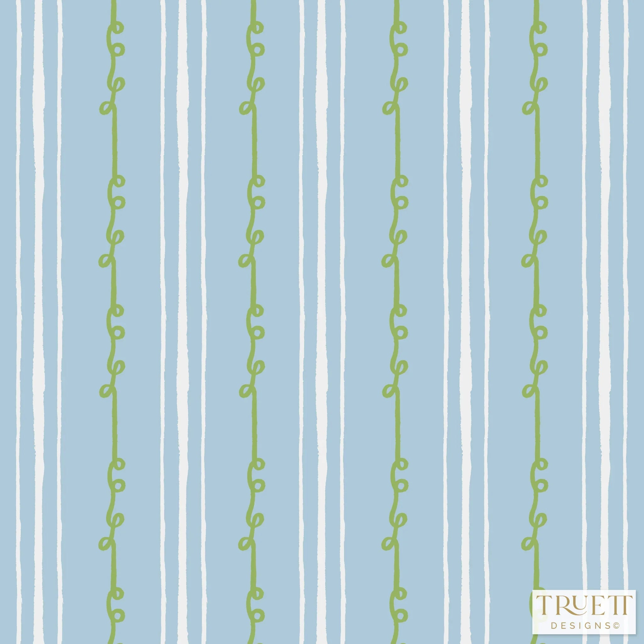 Sister Stripe Blue, Green & White Luxury Wallpaper