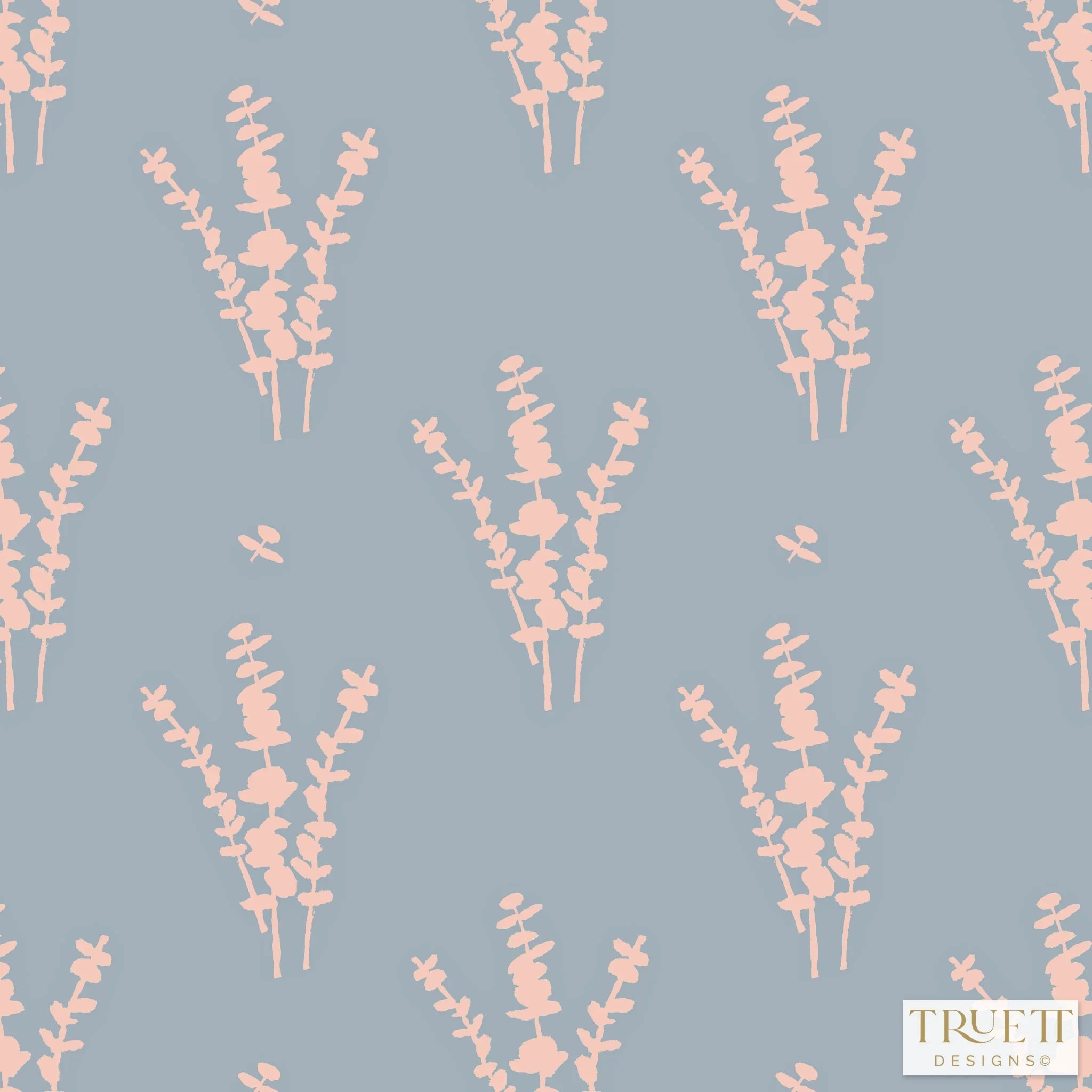 Eucalyptus Blue & Pink Small Repeat Luxury Fabric by the Yard