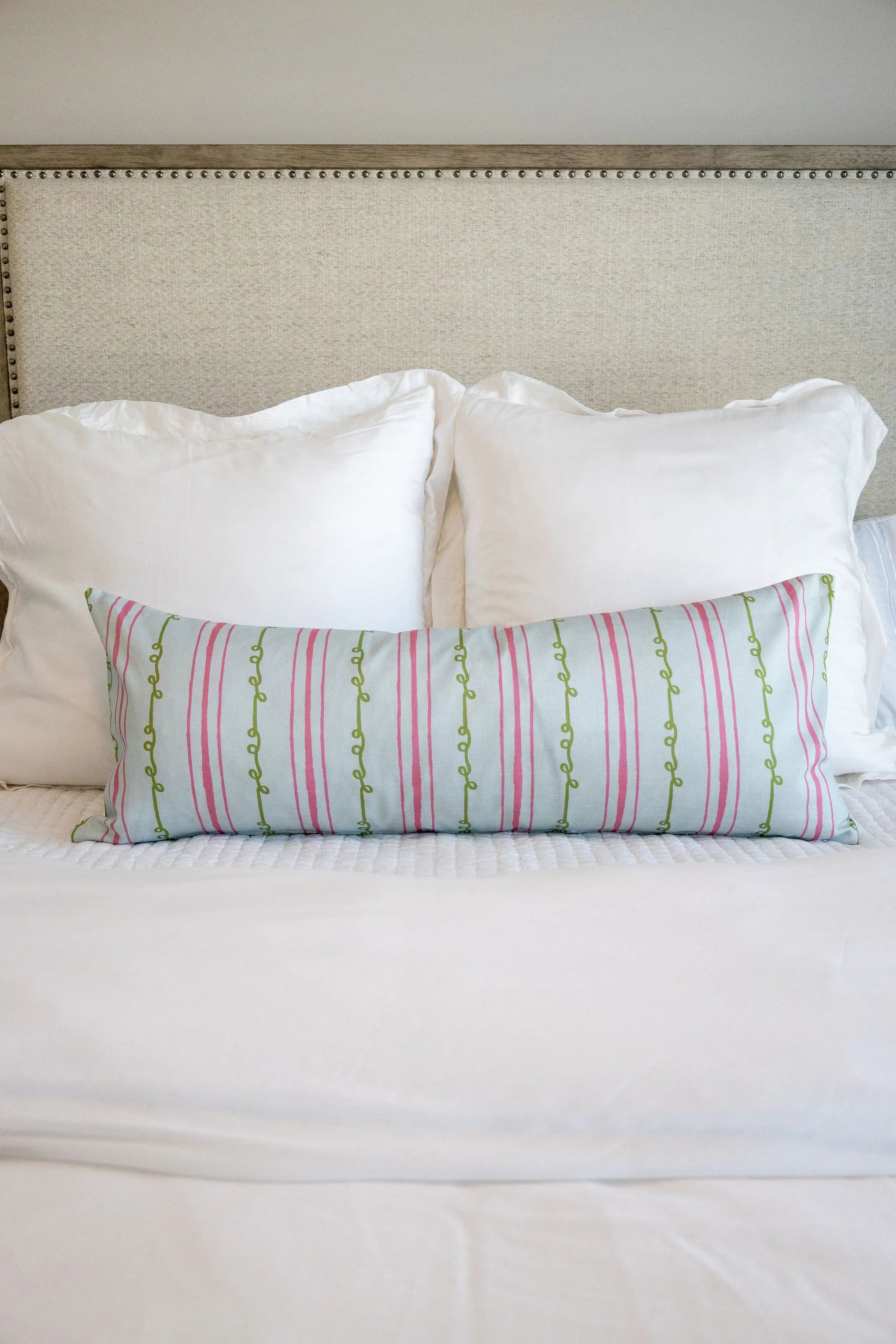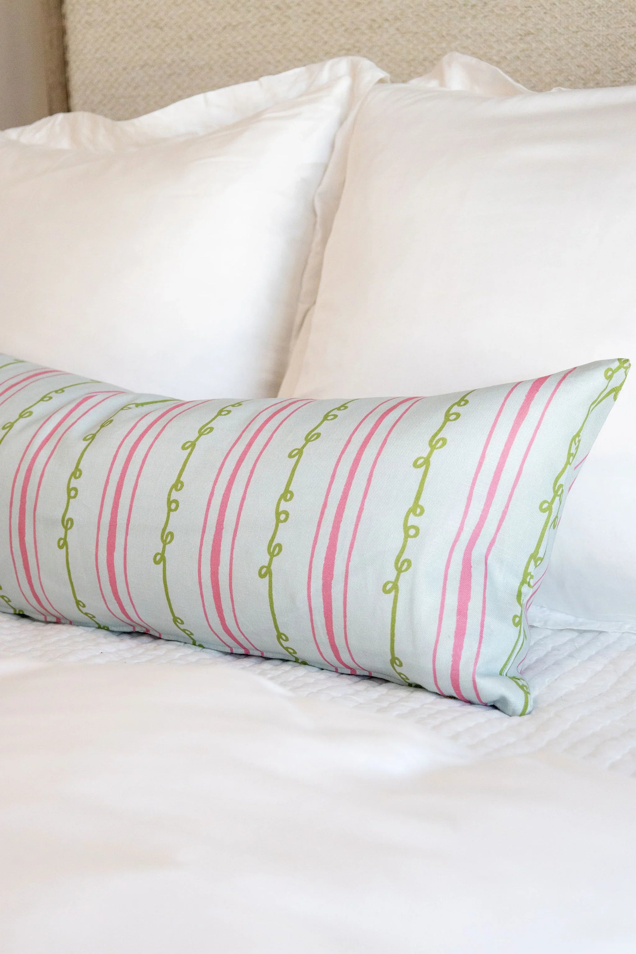Sister Stripe Light Blue, Green & Pink Luxury Bolster Pillow