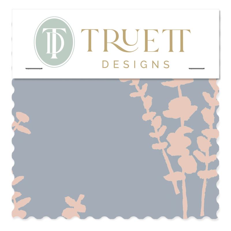 Eucalyptus Blue & Pink Small Repeat Luxury Fabric by the Yard