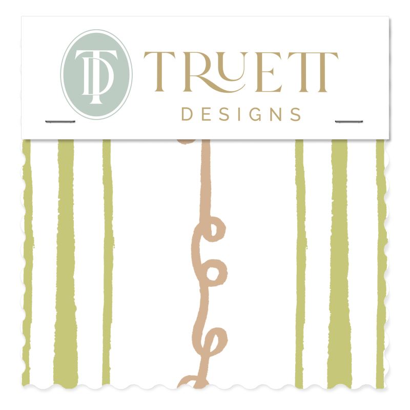 This watercolor fabric, Sister Stripe White, Green & Peach has a timeless and cheerful feel that complements any space. The design incorporates personal significance for Truett, as it showcases her daughter's initials.