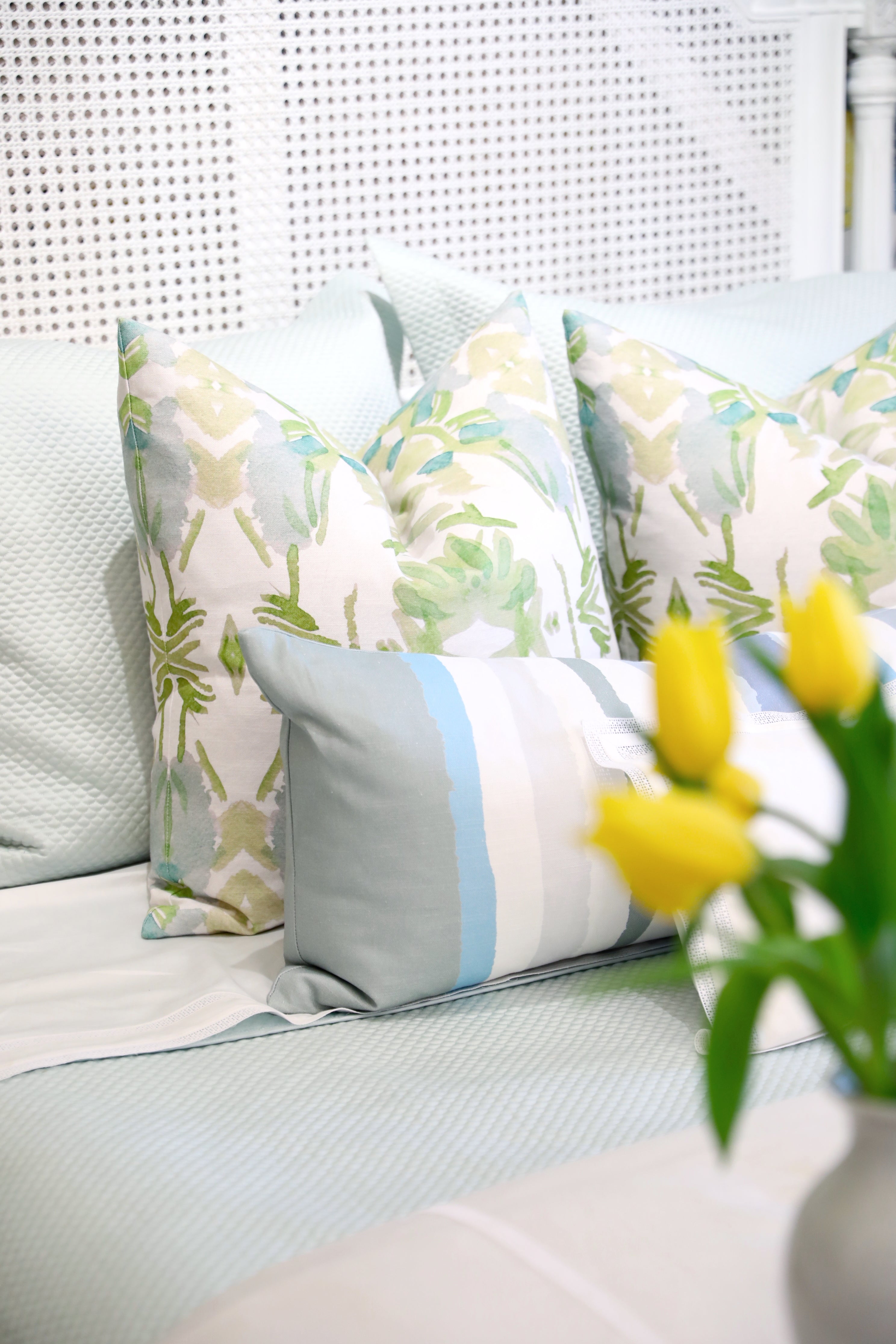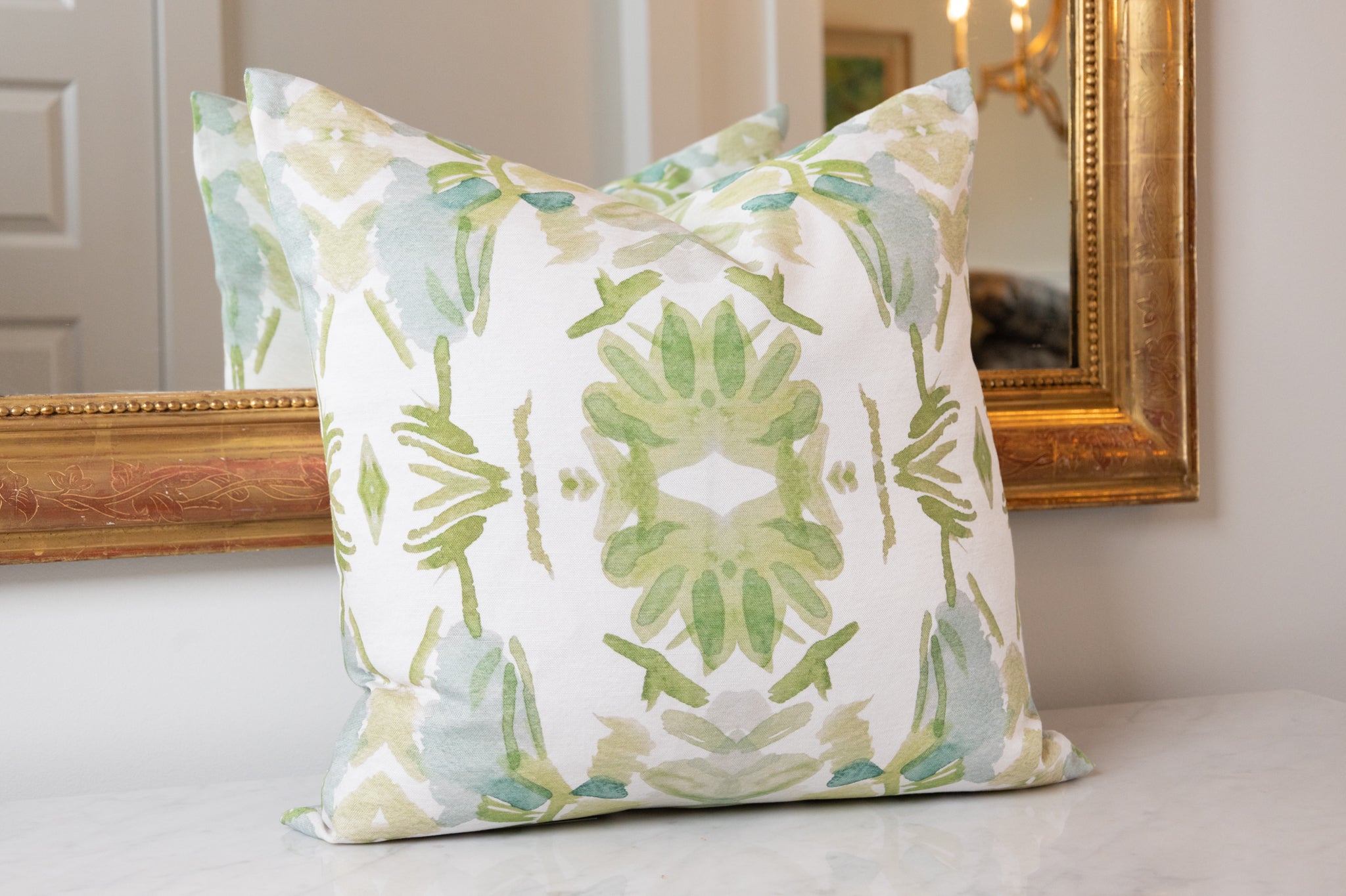 Wildflowers I White & Apple Green Luxury Pillow Large Repeat