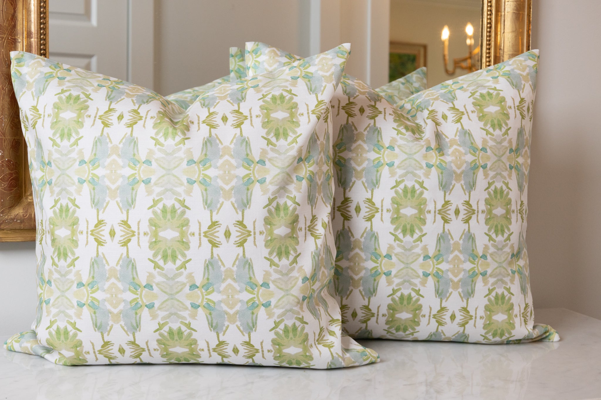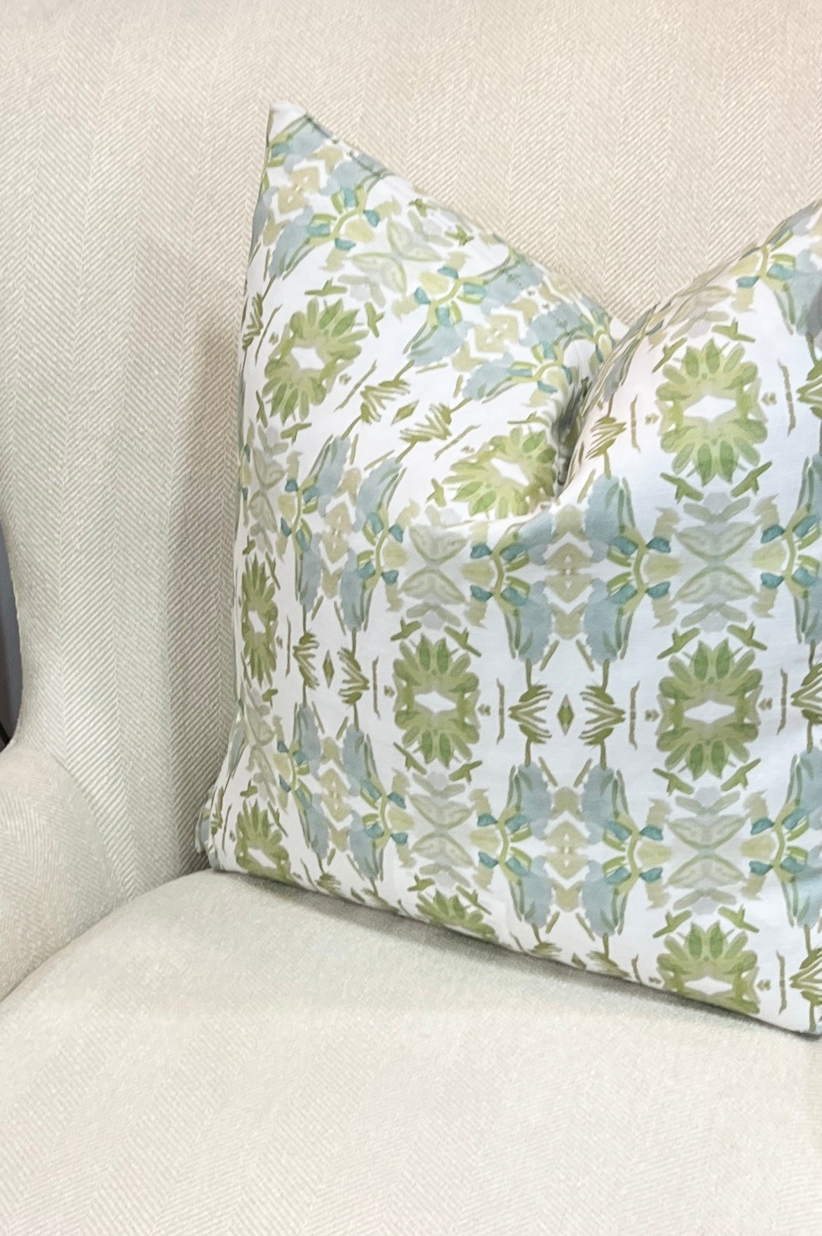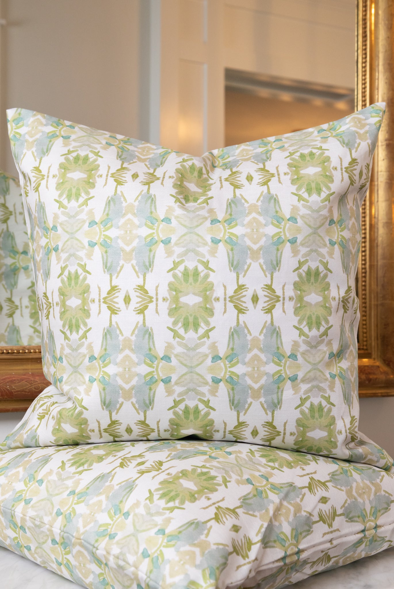 Wildflowers I White & Apple Green Luxury Pillow Small Repeat